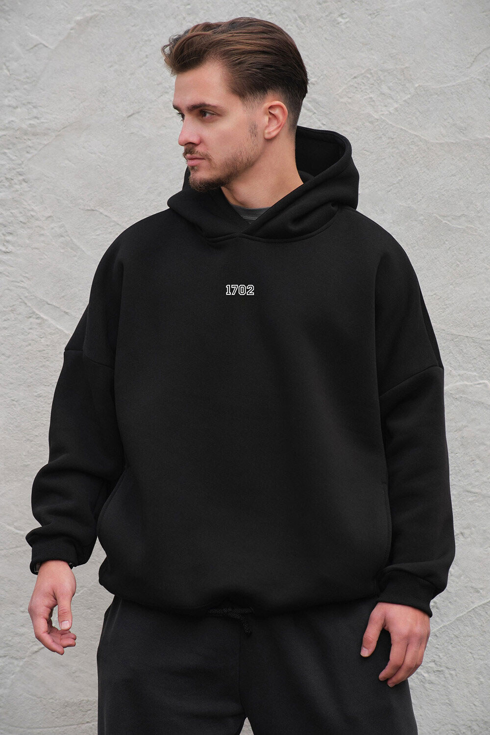 Herren Hoodie aus Fleece in Übergröße mit Aufdruck Hollow Schwarz Without 8055526