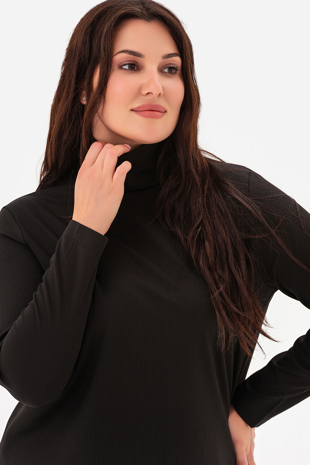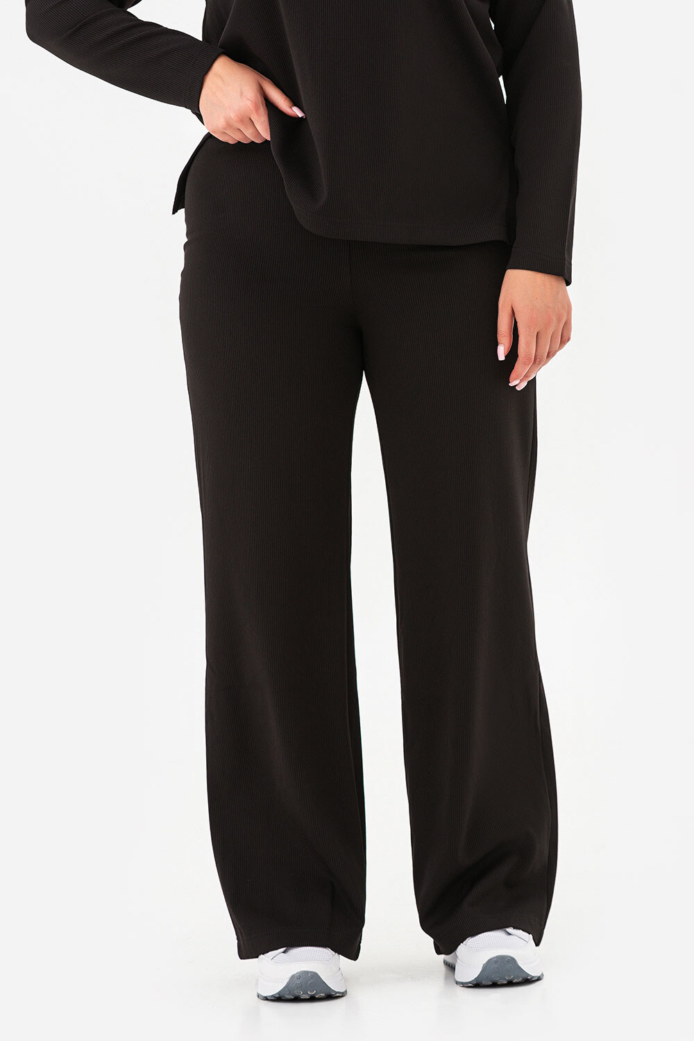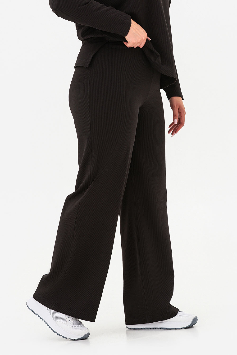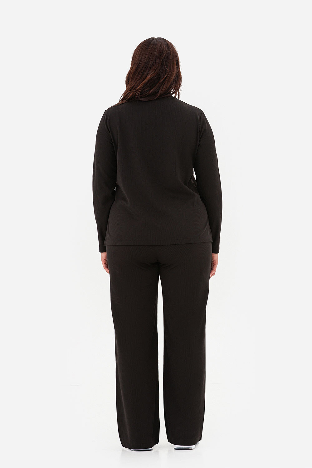 • The loose-fitting turtleneck sweater protects your neck from the chill, while the high-waisted, loose-leg pants create a feeling of lightness and freedom of movement.
