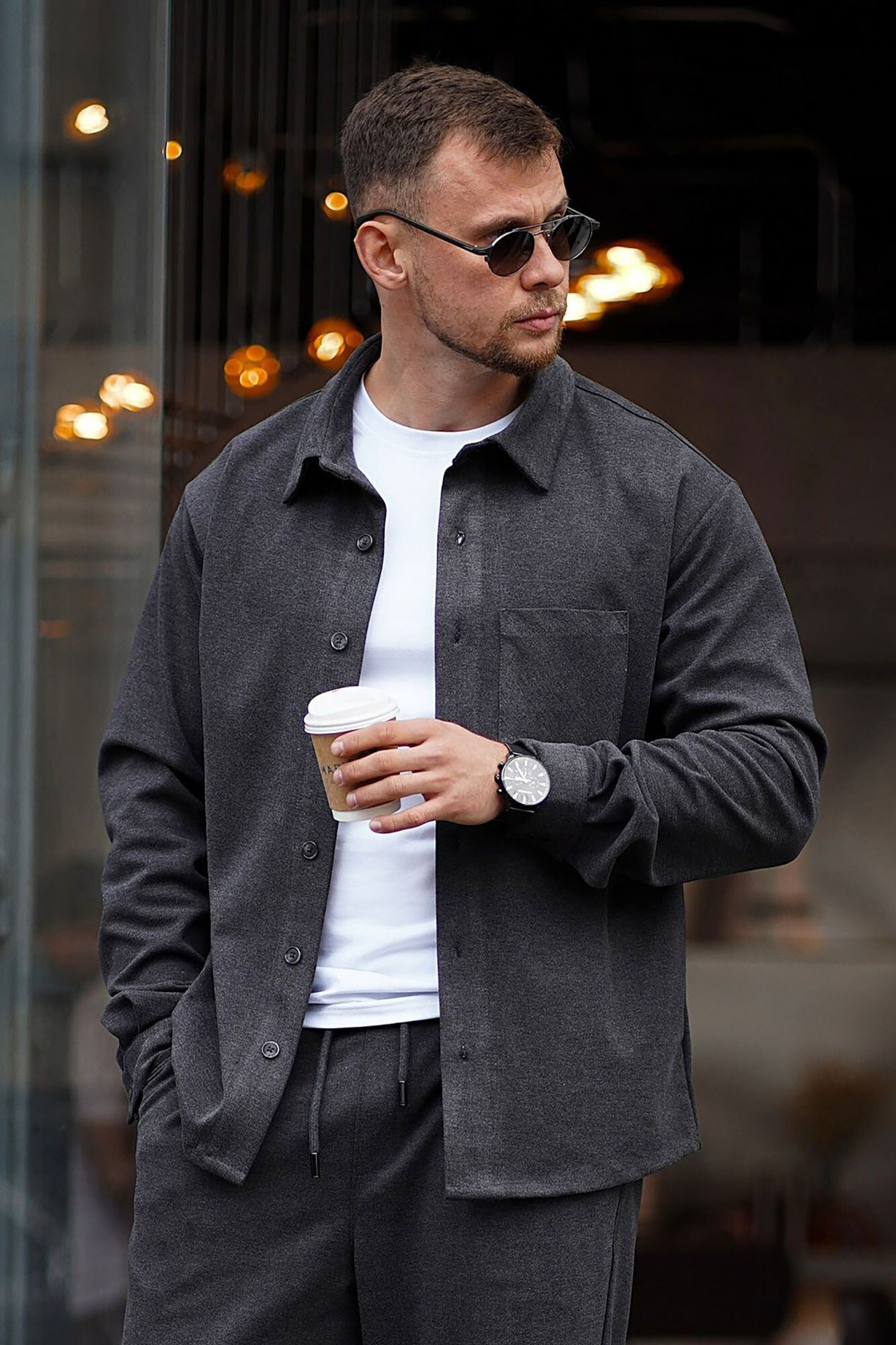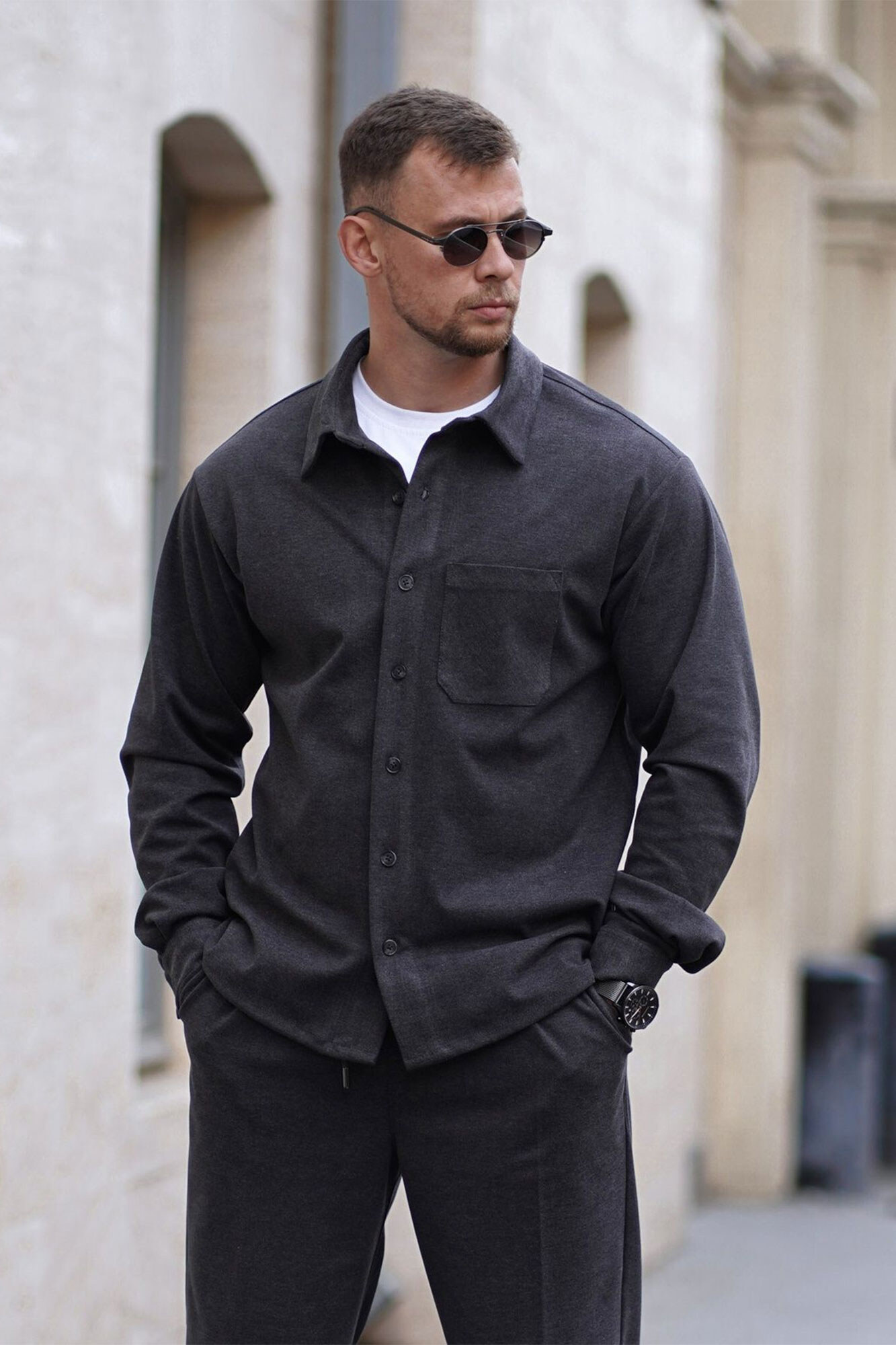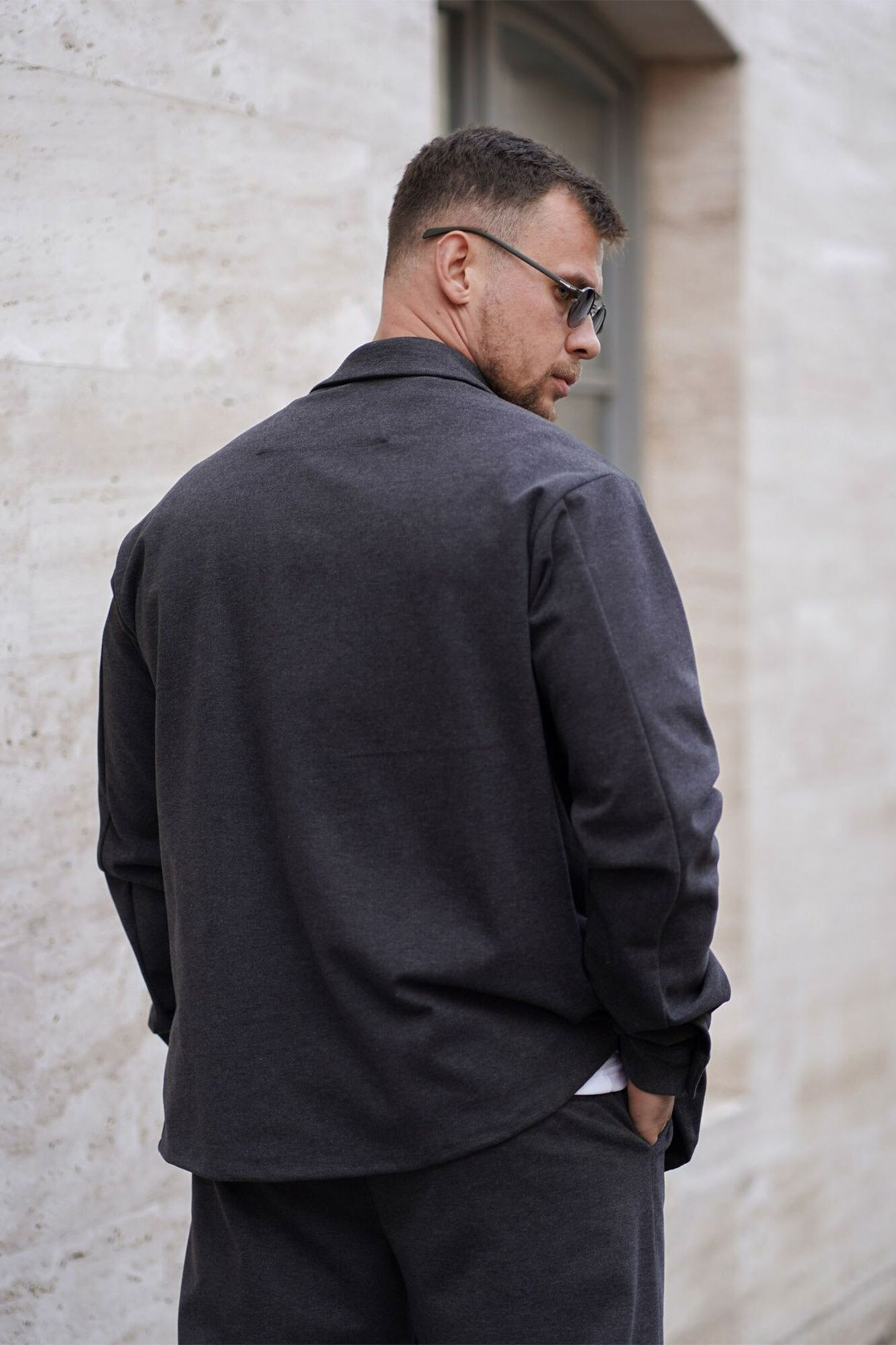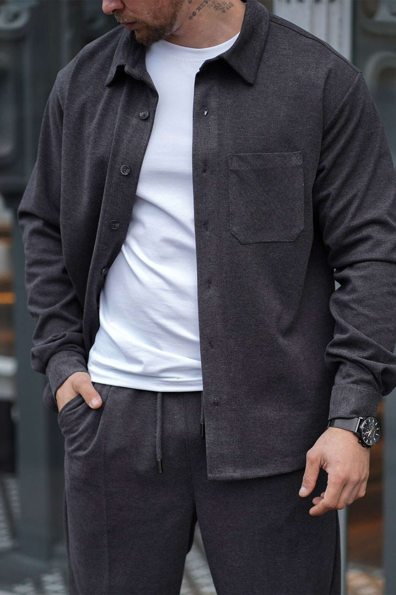 Warmes, übergroßes Herrenhemd aus Kunstwolle. Bequeme Passform. Dunkelgrau. Teamv 8034477