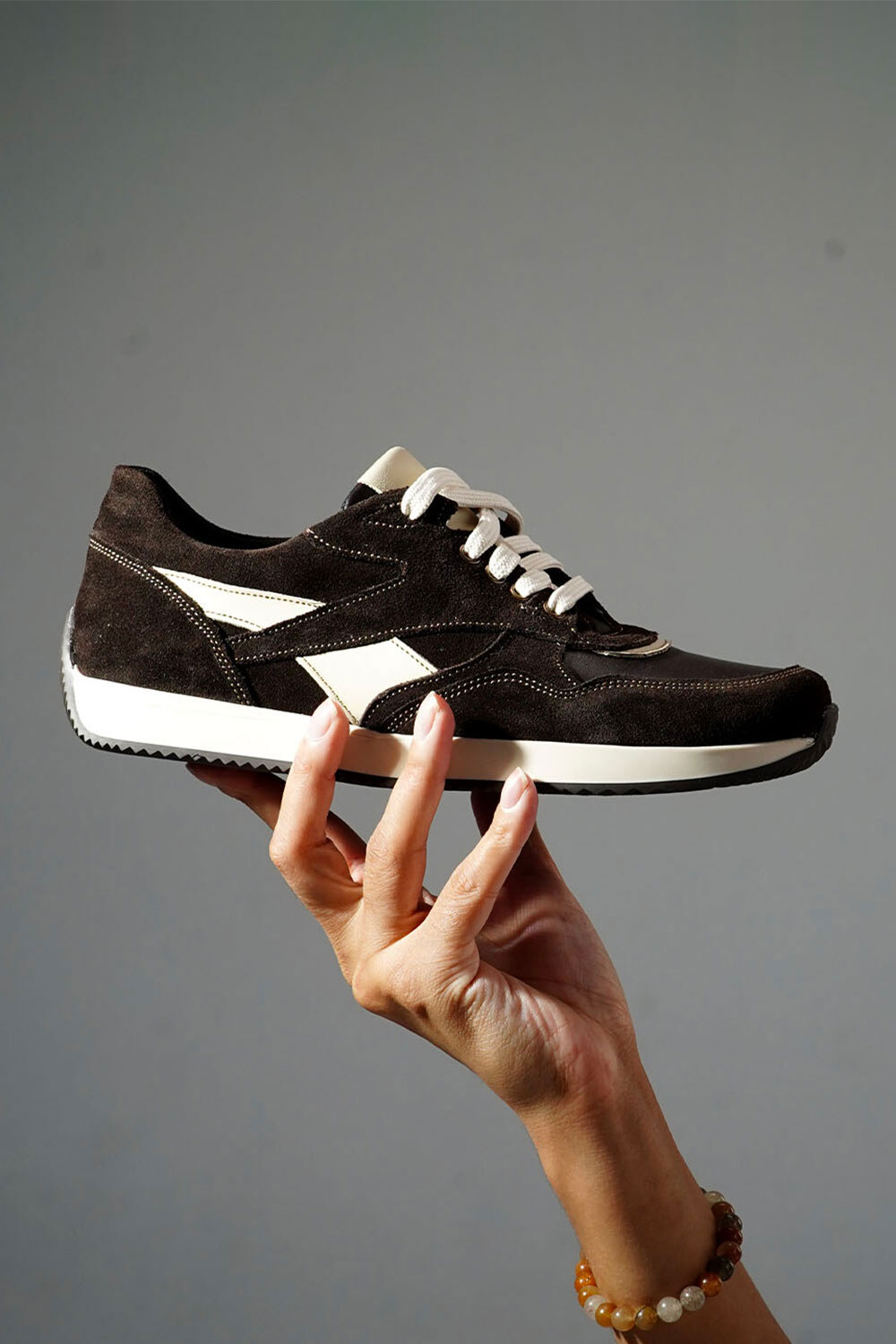 Schokoladenbraune Damen-Sneaker aus einer Kombination von Leder und Wildleder. 4206246