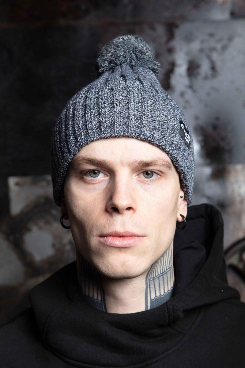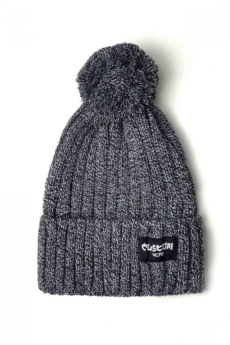 Warme graue Strickmütze mit Bommel und Revers Custom Wear 8025392