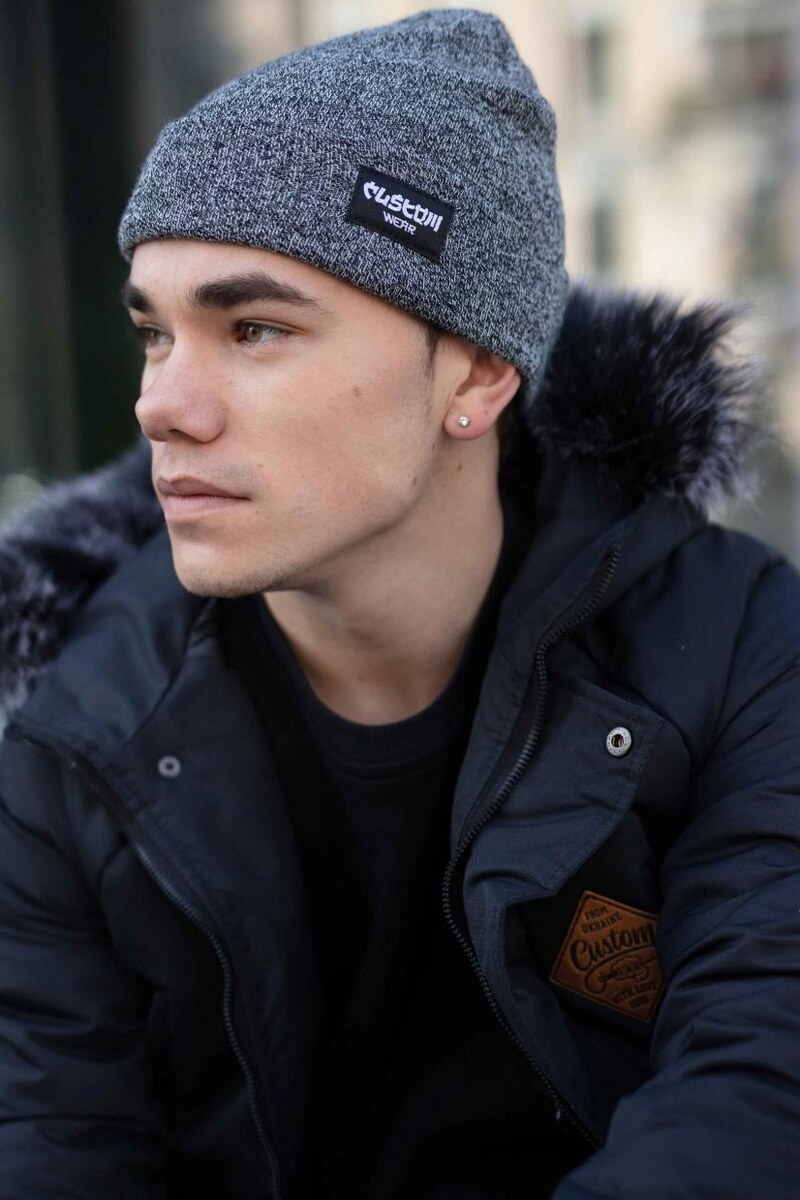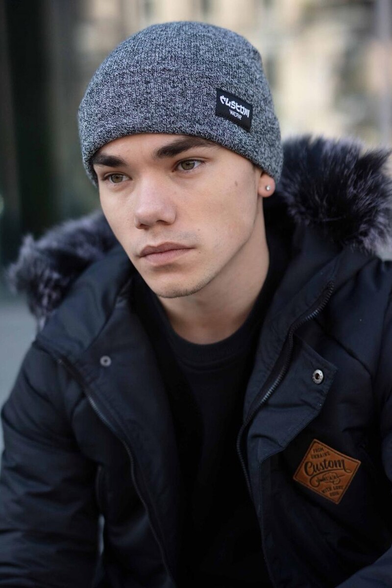 Warme graue Strickmütze mit Revers Custom Wear 8025376