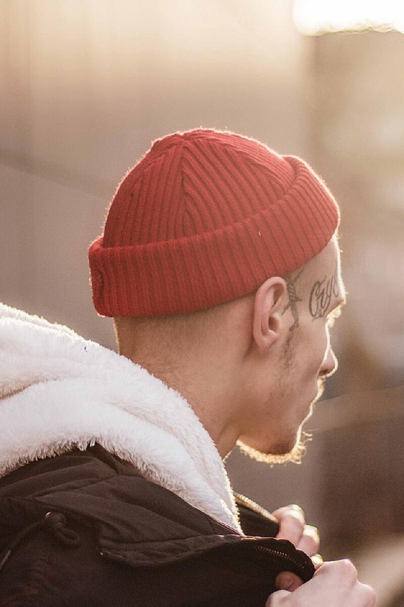 Warme rote Strickmütze mit Revers Custom Wear 8025381