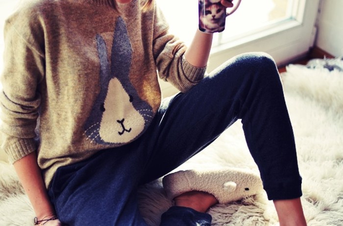 Accessoires sind auch in der heimischen Garderobe angebracht. Die Rede ist von einem schönen Haarband oder einem hübschen Stirnband. Komplett mit Hauskleidung sieht unauffälliger Schmuck wunderschön aus. Wie ein kleiner Anhänger oder Ohrstecker. Warme Leggings oder interessante Socken sind an einem kühlen Abend praktisch. Mit einem Wort - sei vielfältig!
