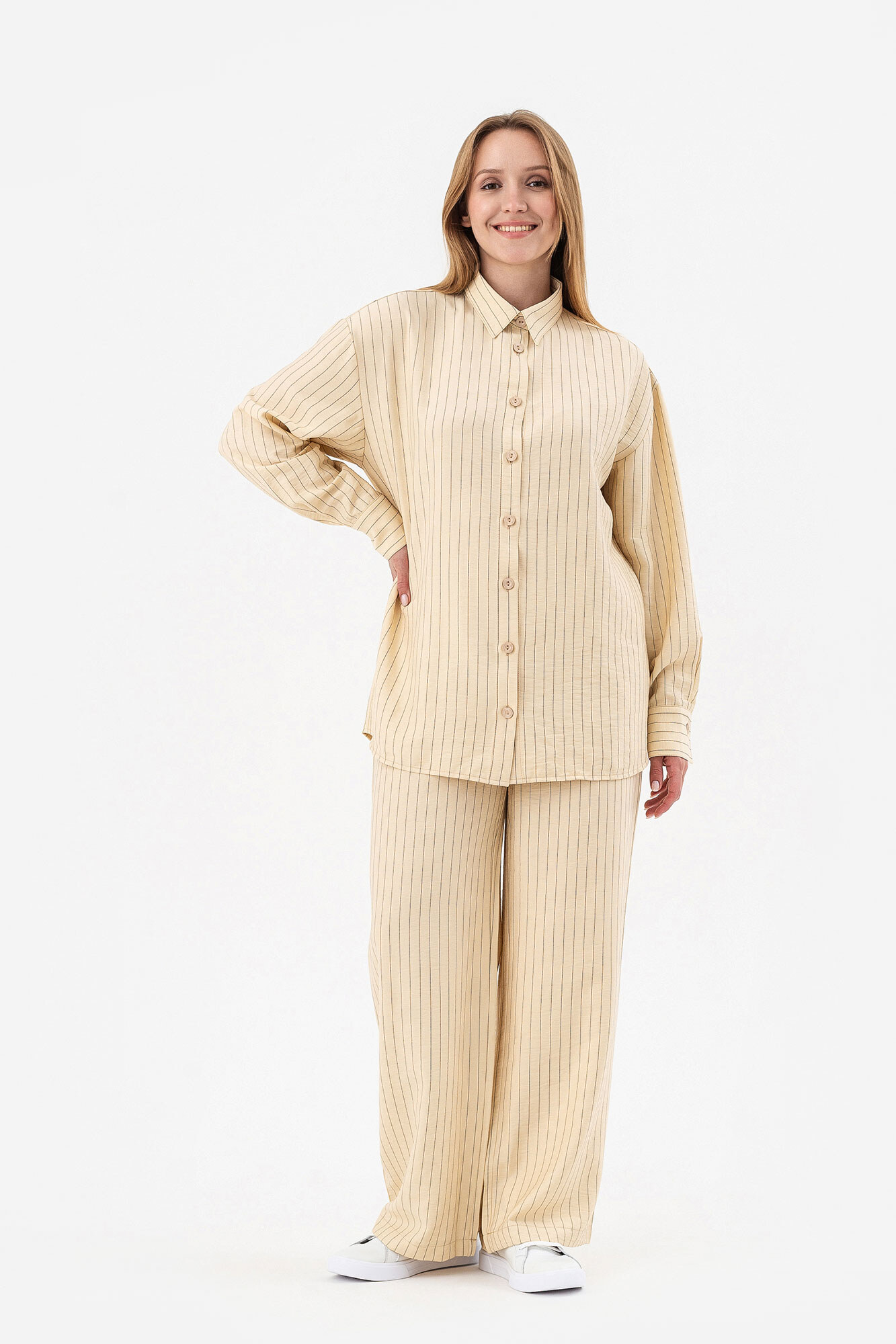Придбала сорочку разом із штанами. Дуже стильний та комфортний костюм вийшов. Пошиття якісне.