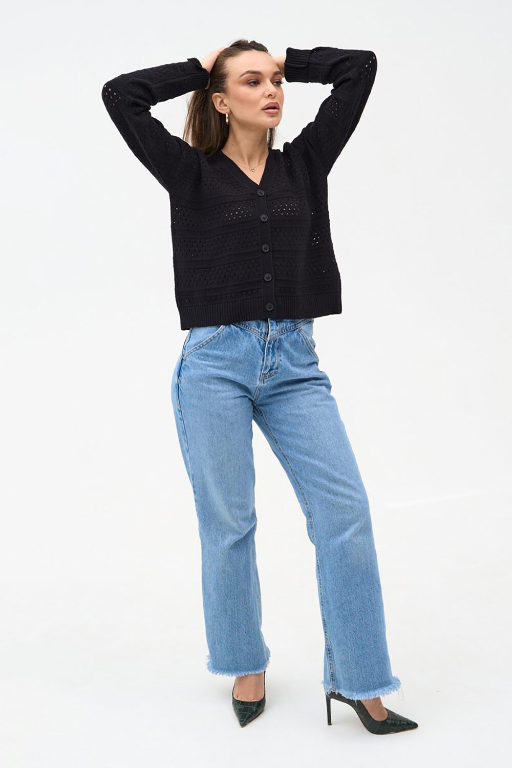 Приємна річ. Все чітко як на фото. Тільки приємніше) має гарну розтяжність. І неймовірну м.якість. Рукав як годиться. 46/48 на мої 95/88/108 виглядає як на моделі. Колір блакитний дуже ніжний. Вдячна. Вкотре радію, GARNE, з Вами приємно мати справу!