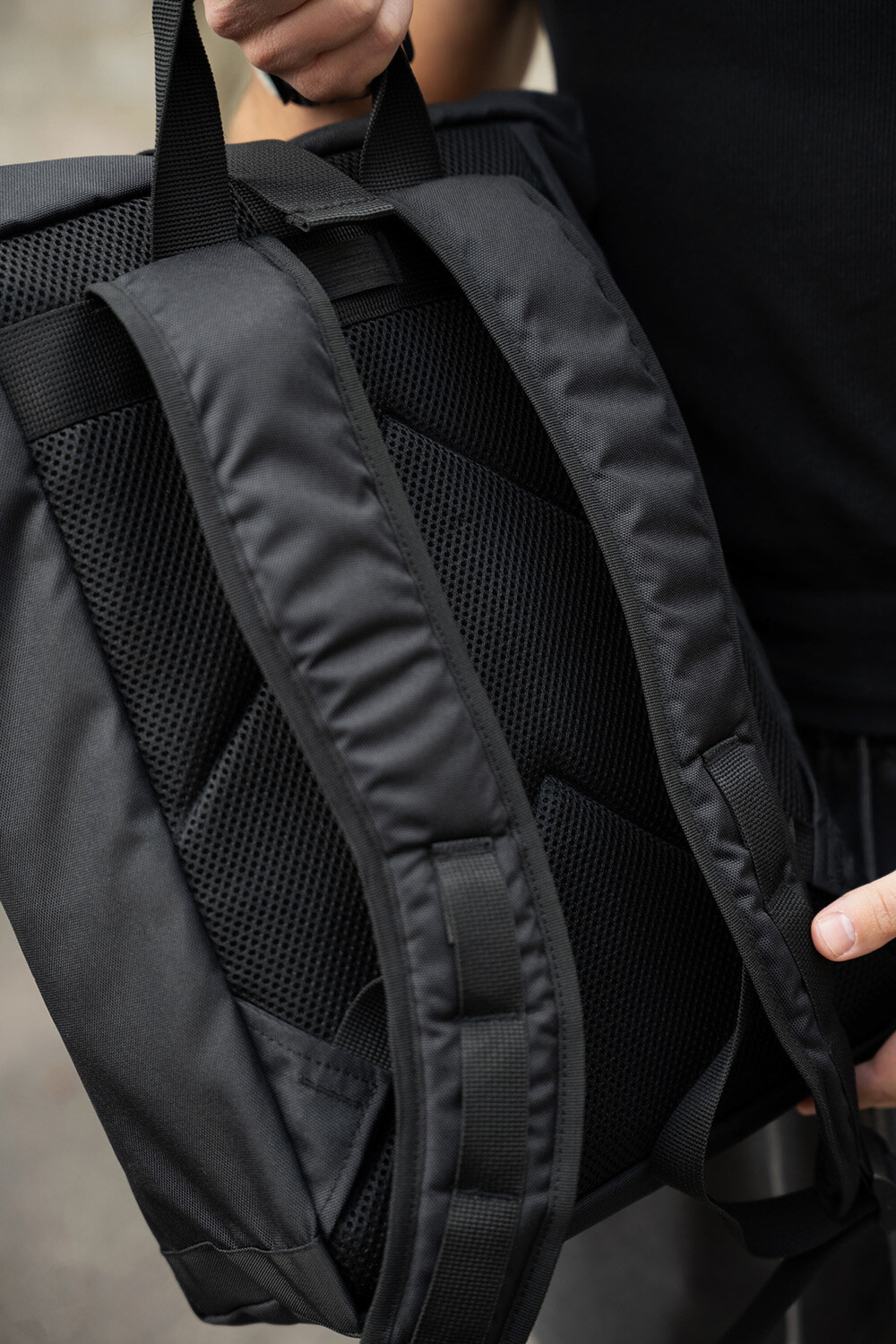 • The ventilated back of the rolltop maintains comfort in hot weather. *Additional straps with buckles on the backpack straps help distribute the load effectively.