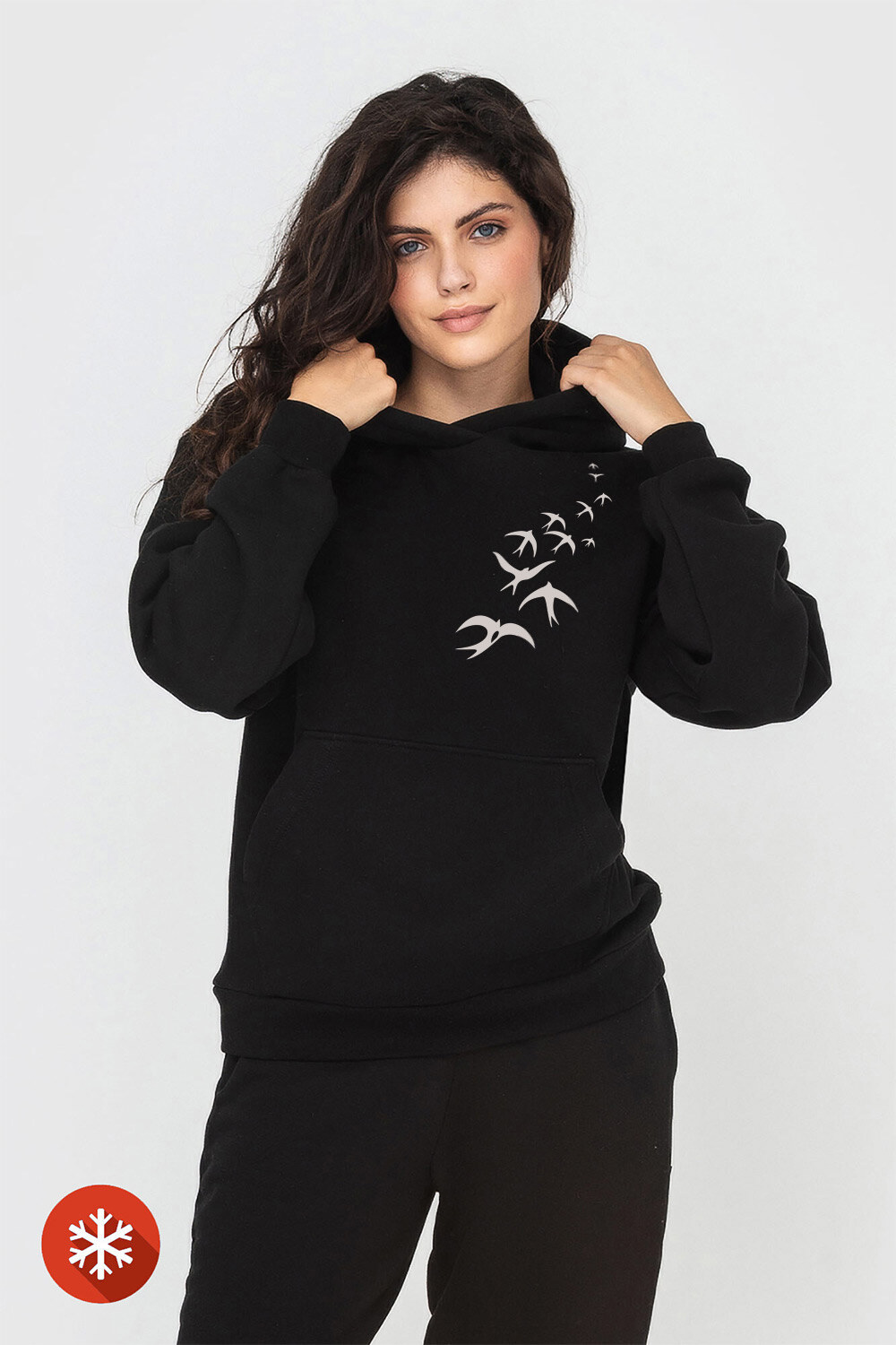 KAMALA "Swallows" insulated hoodie, black Garne 9001598