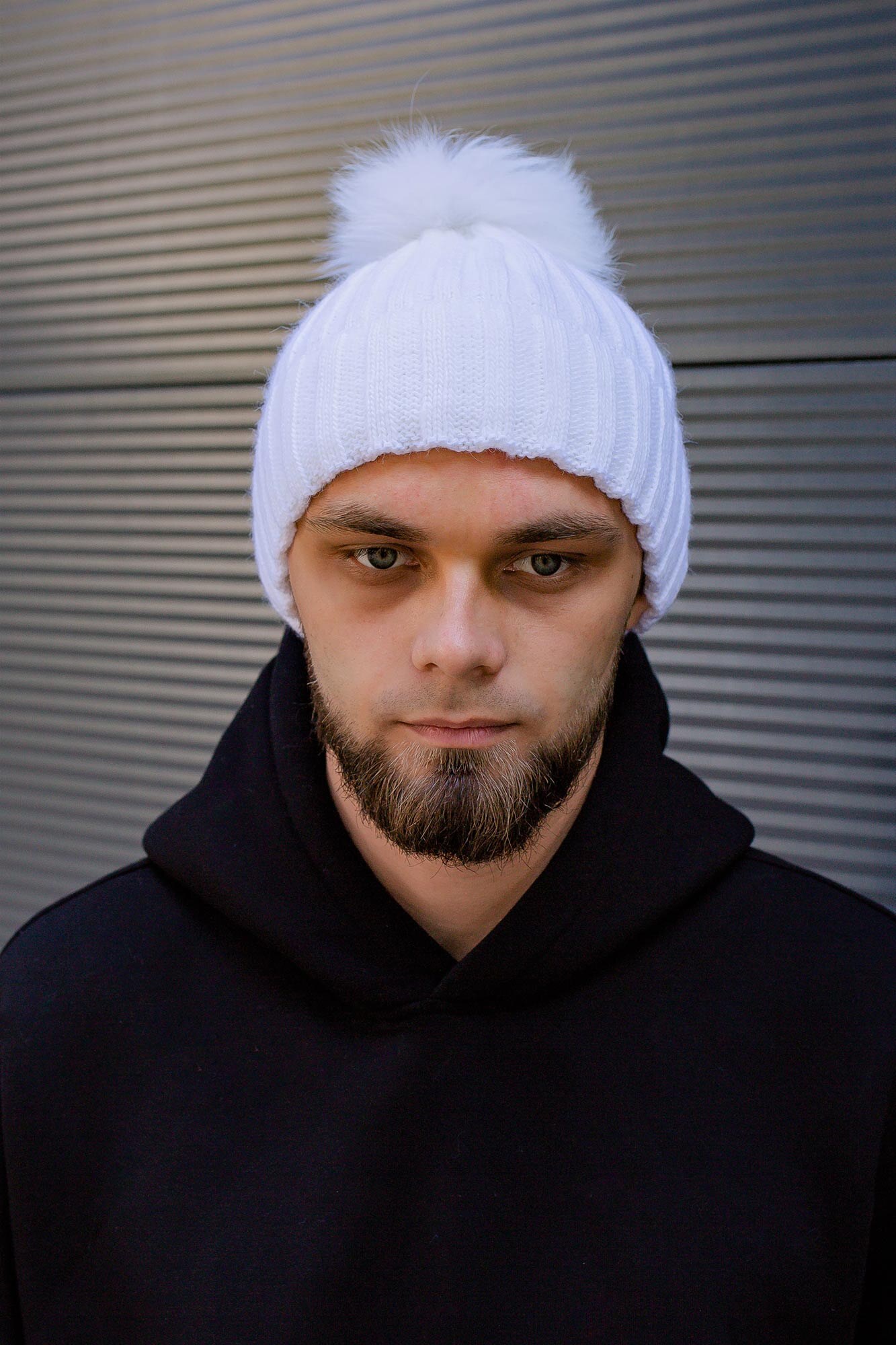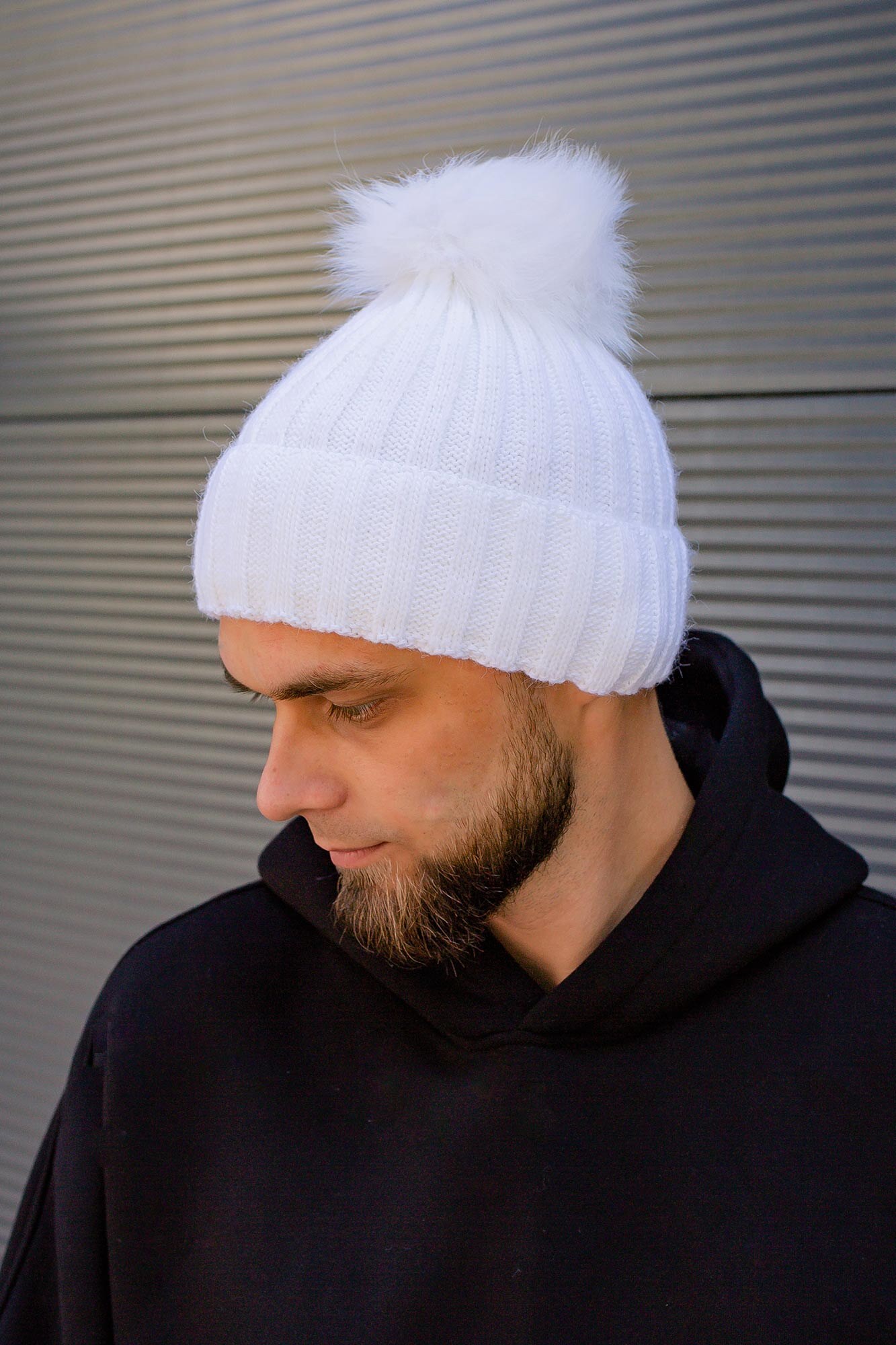 Wool-blend knitted hat for the winter with a fluffy fur pompom Without 8048799