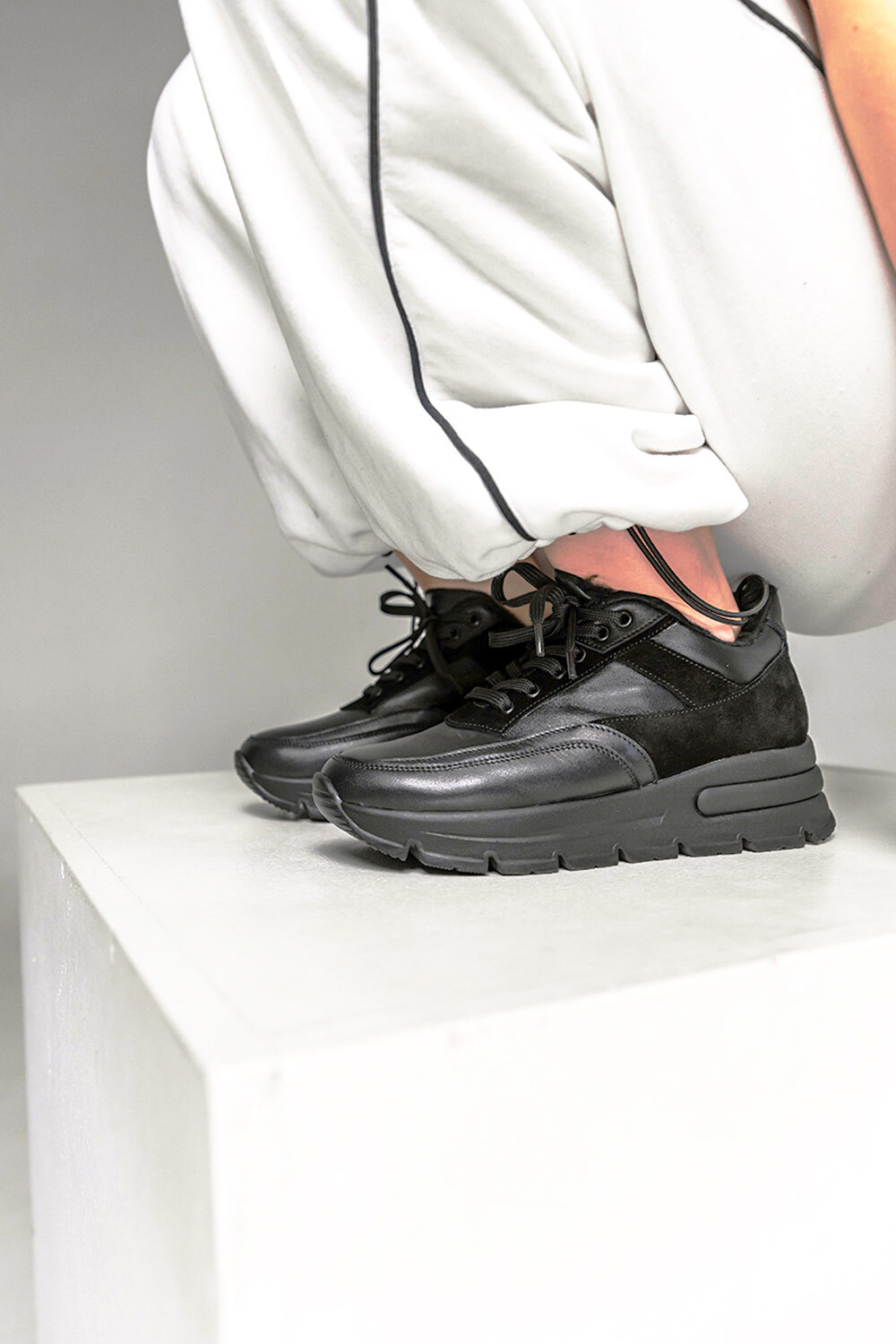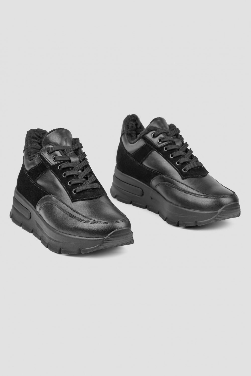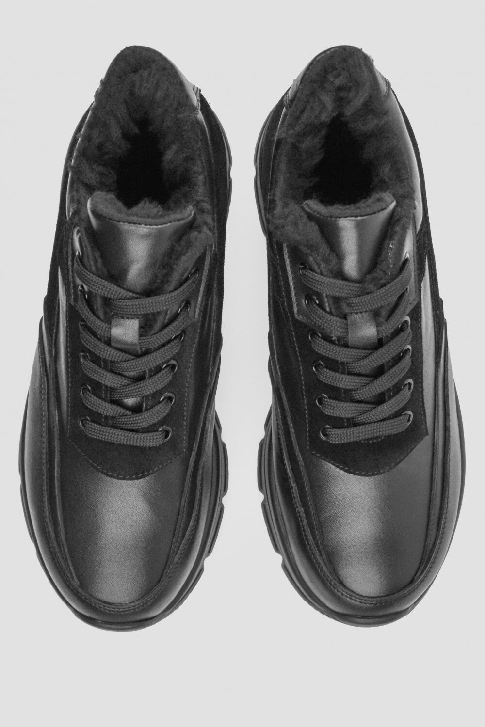 Шкіряні жіночі зимові кросівки чорного кольору 4206217