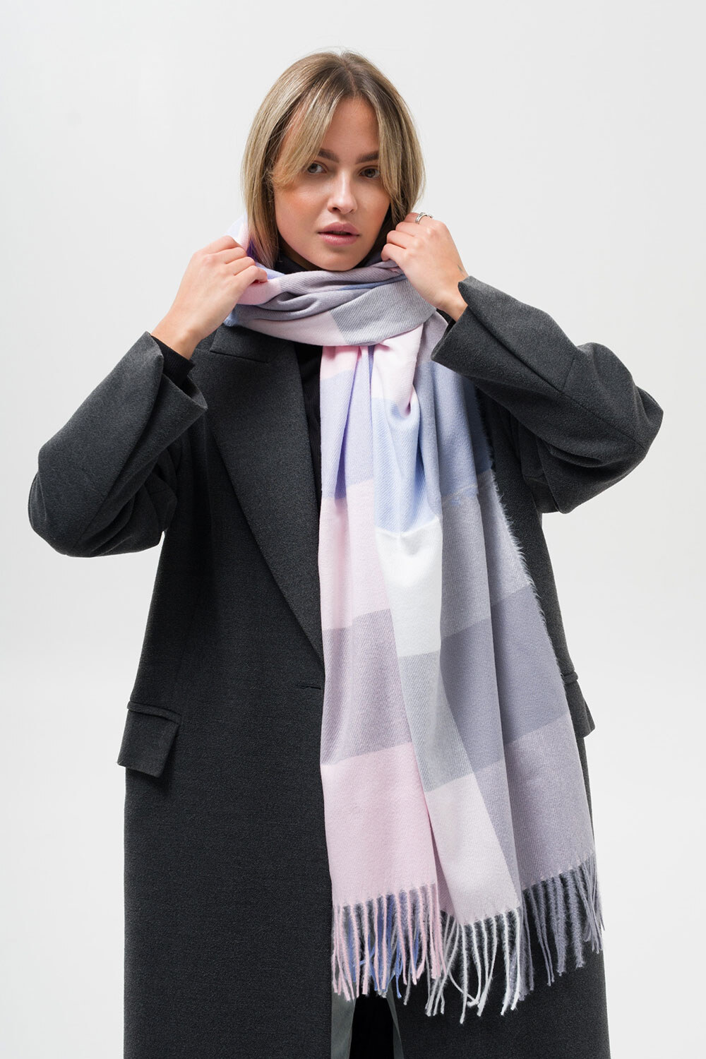 • Стильний шарф у клітинку з класичним дизайном — ідеальний вибір для холодної пори року.