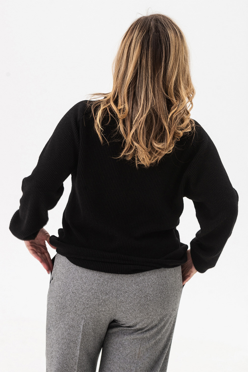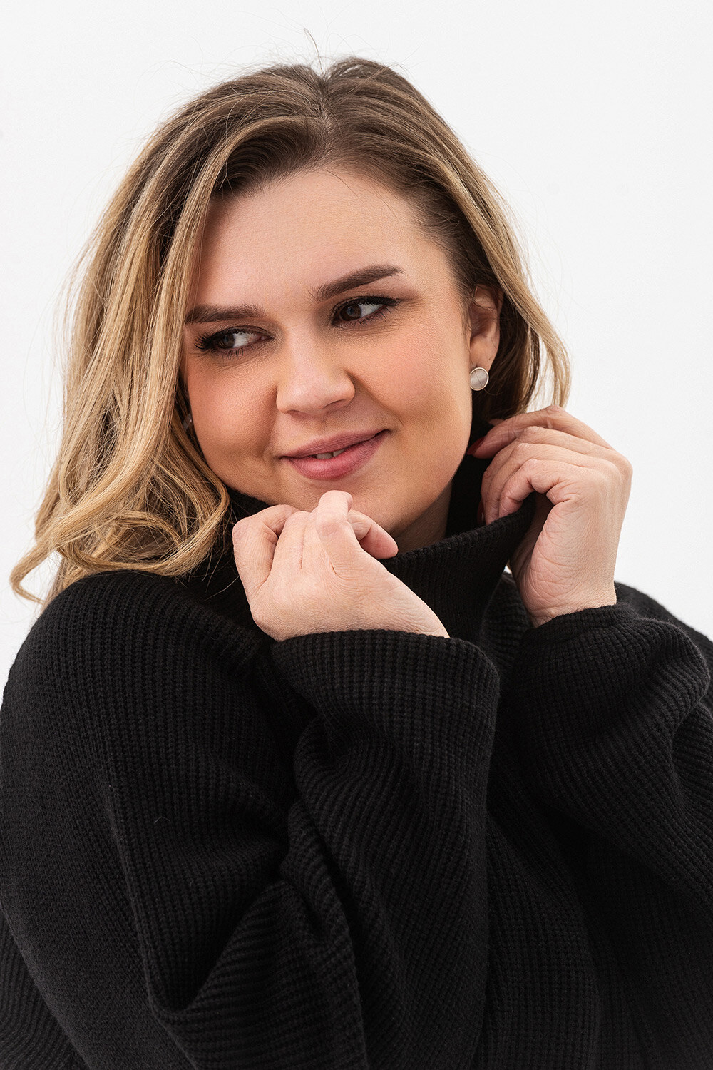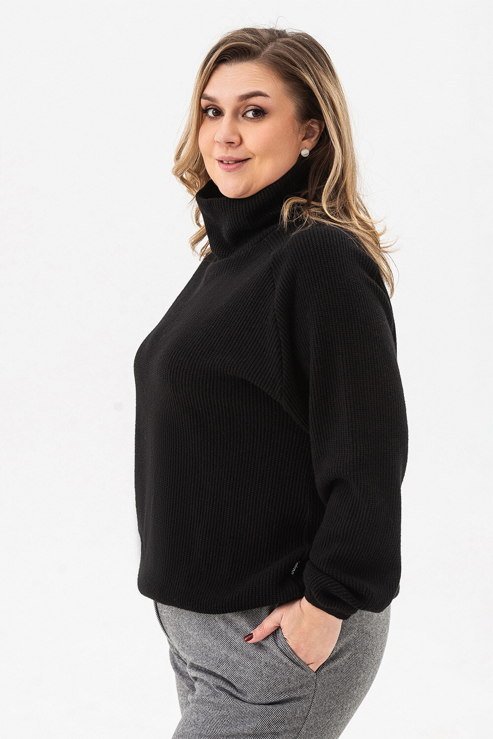 Кофту справді можна вважати светром. В.язка щільна і важка. Проте фактурність, яку видно на фото не передає відчуття гладенькості і шовковистості при дотику. Фото точно відповідає реальності. Комір виконано подвійним. Як на водолазках із стійкою, без загину, трохи ширший, але це дає можливість викладати його за бажанням, або просто залишити стійкою. Обрала бежевей колір, він точно такий, як на фото. Розмір універсальний, менший теж підійшов би на мене 95/88/108.