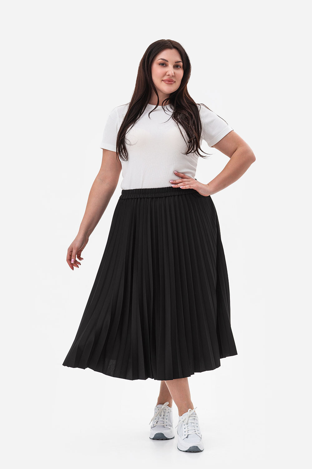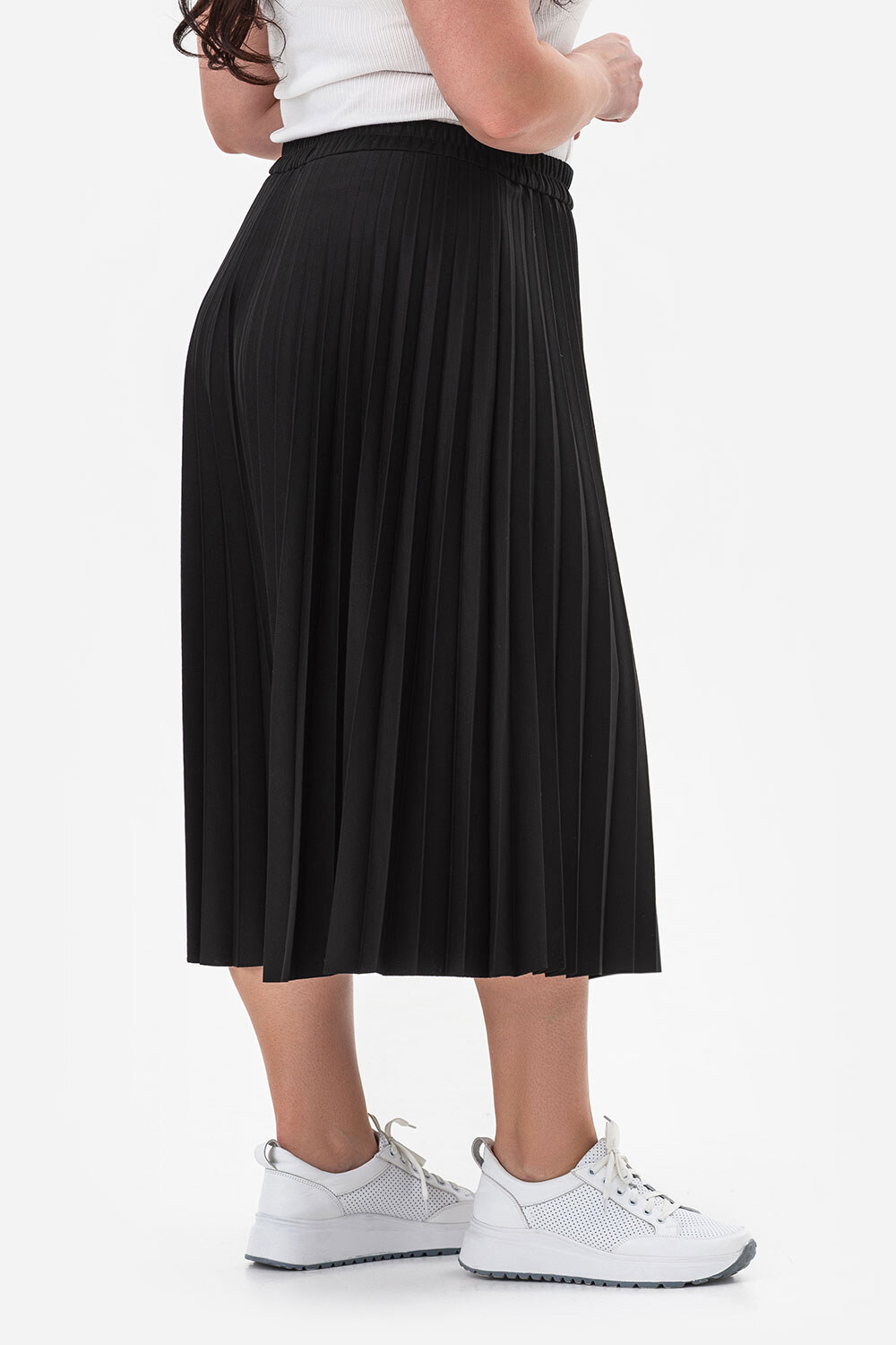 {Product name} goes well with blouses and shirts, creating an elegant and feminine look. Try wearing it with heels for formal events or with flats for a more relaxed look.